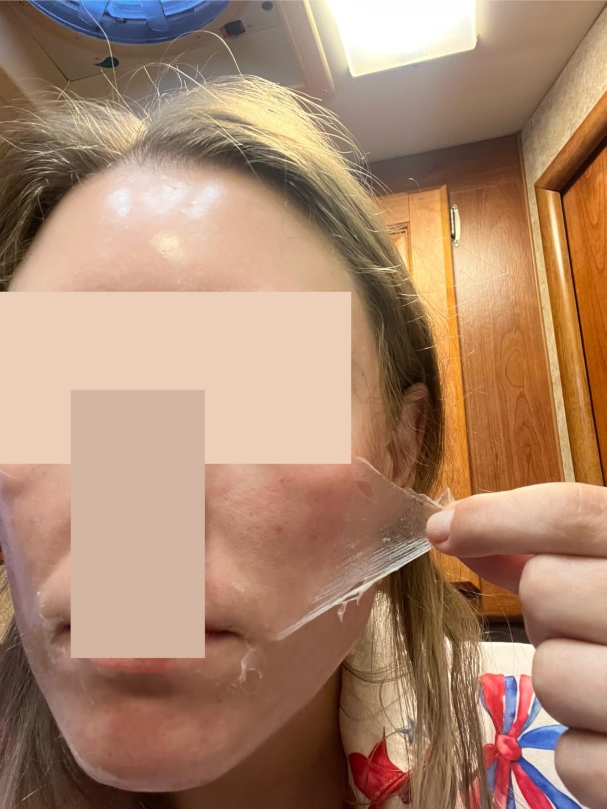 Por la mañana, retira suavemente la película desde los bordes oenjuaga con agua tibia. Si la dejaste secar por completo, no debería transferir. Si quedan restos, masajea con agua y seca a toques (sin frotar).