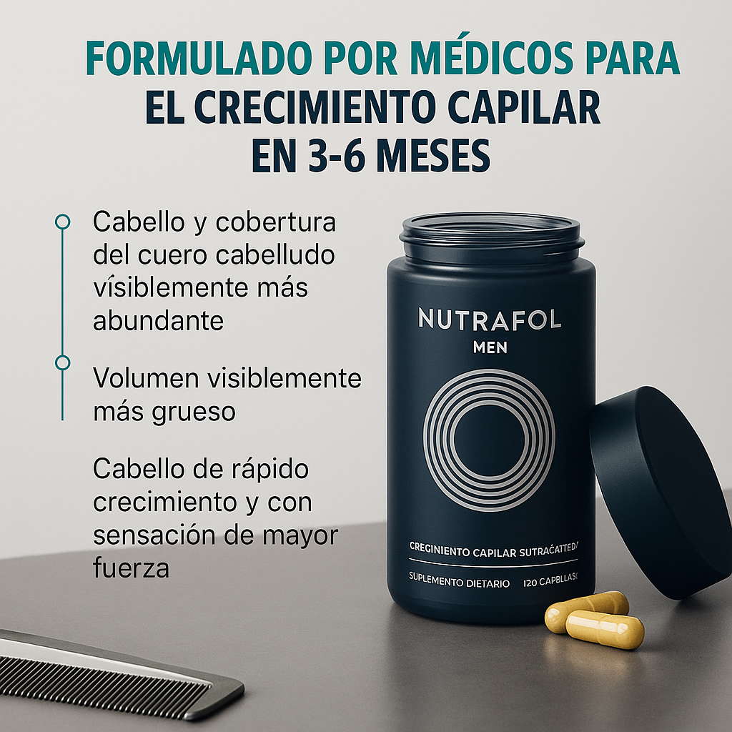 Nutrafol aporta colágeno marino, antioxidantes y nutrientes esenciales que contrarrestan los efectos de la edad, revitalizando tu cabello desde dentro.