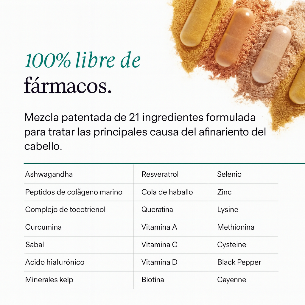 En resumen, ofrecemos soluciones para el crecimiento capilar personalizadas y formuladas con vitaminas, minerales e ingredientes naturales, 100 % libres de fármacos, respaldados por estudios clínicos e investigaciones publicadas sobre ingredientes. Muchos suplementos no están clínicamente probados. Otros tienen una potencia variable y se absorben mal.